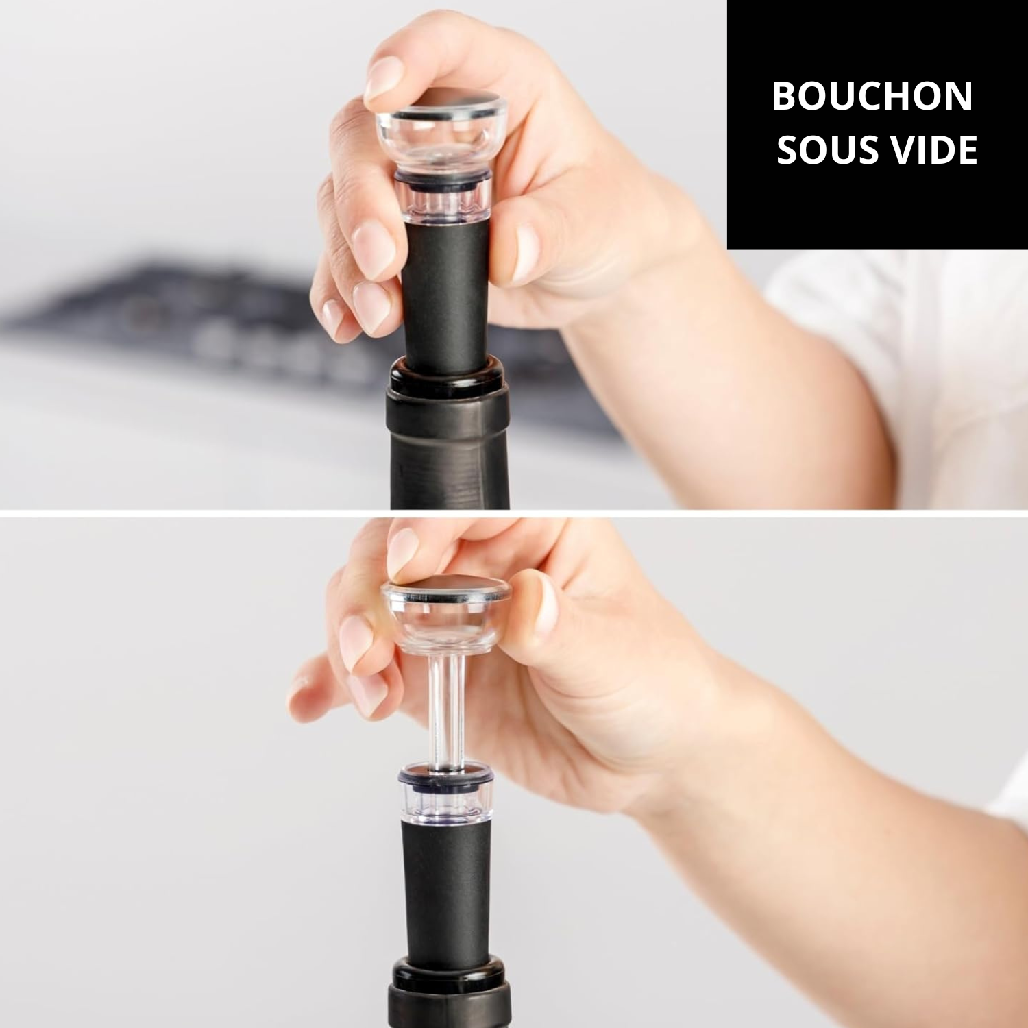 "Le bouchon vide-air fonctionne parfaitement. Mon vin reste frais 4-5 jours sans problème. Fini le gaspillage de bouteilles entamées !"